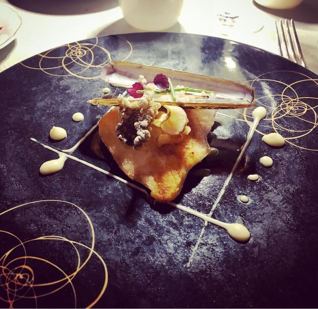 (Risotto zafferano fiori di zucca e foglia d'oro 18kt) - Saffron risotto with gold leaf 18kt
